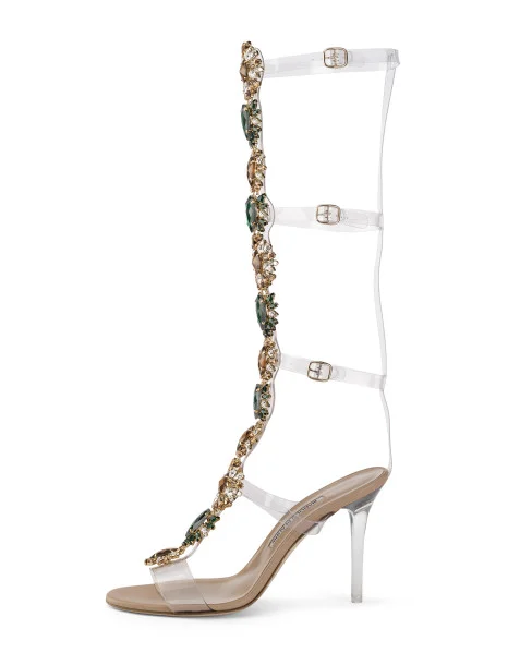 Titled “So Stoned,” the collection of sandals includes a Swarovski-crystal encrusted gladiator sandal with a clear Perspex heel. The sandals will be priced from $1,265-$2,325 and will hit stores in June 2017.