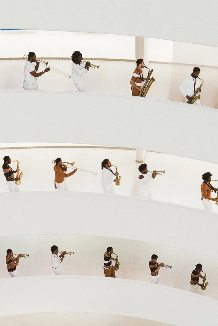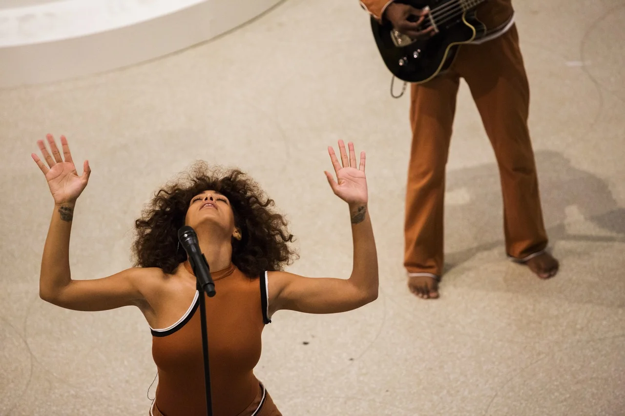 Solange was backed up on the first floor by two vocalists, six musicians and eight dancers. Playing off on the Guggenheim circular space, a 13-member horn ensemble played above the band on the space’s second floor. Later on in the performance, 32 additional dancers descended to the ground floor for the event’s grand finale.