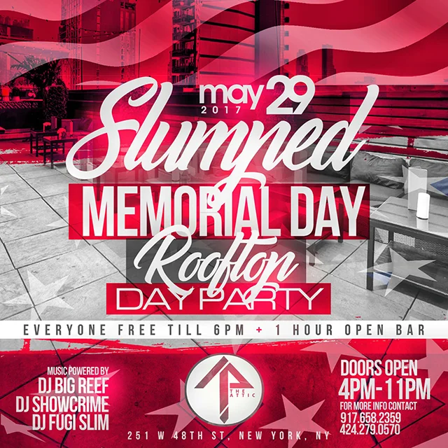 Admission: Free before 12:30 a.m. with RSVP | memorialsundayrooftop.eventbrite.com